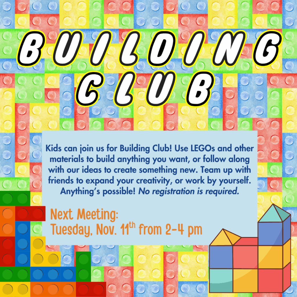 Come to the library on Tuesday, 11/11 from 2-4pm to build your own creation!