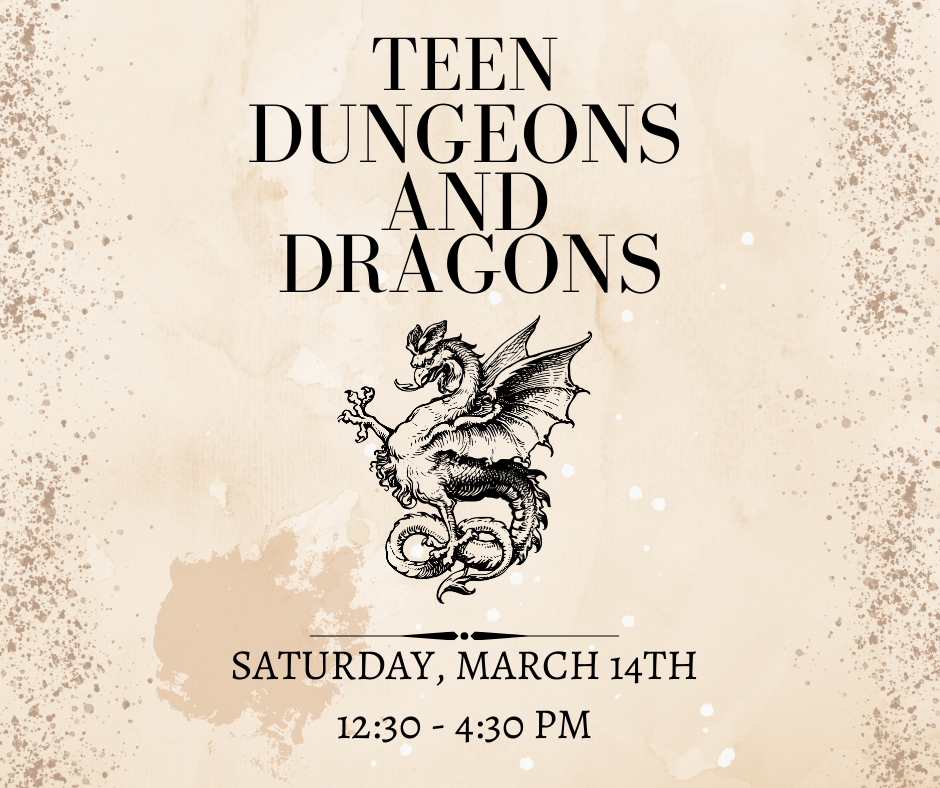 Itching for another one shot? We’ve got one for you already! Join us for another one of our popular D&D 5e one shots on Saturday, March 14th, brought to you by three stupendous Dungeon Masters. Whether you’re a beginner or a long-time player, our experienced DMs will make you feel welcome at our tables. Registration is required; for ages 12-18. Register at https://gfjlibrary.libcal.com/event/16416133.