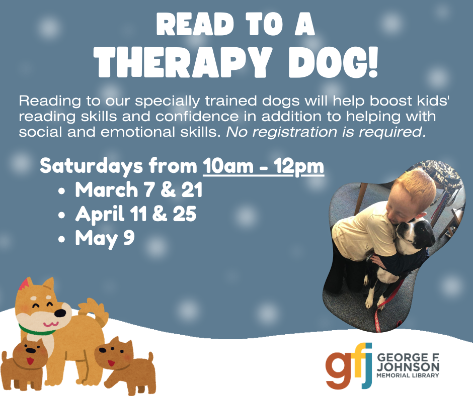 Reading to our specially trained dogs will help boost kids’ reading skills and confidence in addition to helping with social and emotional skills. No registration is required.